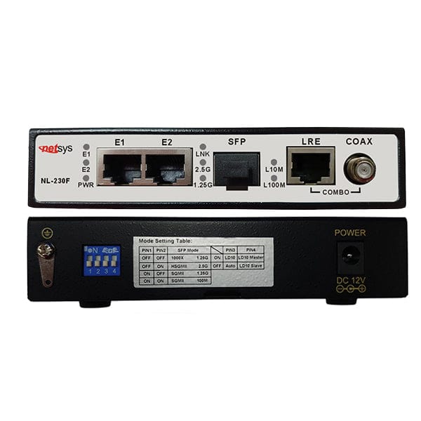 The NL-230FKIT comes with two (2) NL-230F units and everything you need to quickly and easily deploy one point-to-point, high-speed Ethernet link with no configuration required. The RJ-45/coax combo LRE port allows seamless integration of UTP cable or coax cable. Lastly, the built-in SFP Port can be used with any standard Fiber SFP Transceiver (not included) making the NL-230FKIT an outstanding low-cost solution for a variety of fiber (FTTdp/FTTC/FTTB) network applications.