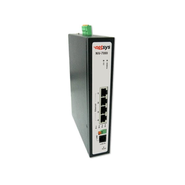 The Netsys NV-700I represents the latest and moset flexible industrial-grade Ethernet over copper solution at an affordable price. With the NV-700I, you can maximize the use of existing phone or network grade cable at symmetrical speeds up to 100Mbps (200Mbps aggregate bandwidth) and distances up to 10,826 feet (3 km) in a wide range of industrial applications! The NV-700I bridge is designed to utilize an external DC power source and is not provided with power supplies.