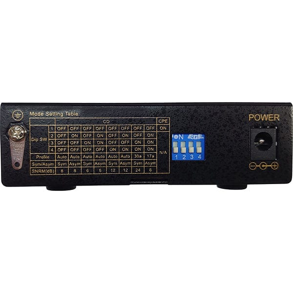 The Netsys VDSL2 GigaPort Ethernet Bridge Modem (NV-202G) features dip switch configuration for CO/CPE mode AND 8 different VDSL2 band profiles (view VDSL2 band profiles and performance table here), including a G.INP mode for noisy environments. Designed to work in pairs for point-to-point applications, the NV-202G is compatible with existing Netsys VDSL2 devices like the NV-202 VDSL2 Ethernet Bridge Modem, NV-500I VDSL2 Industrial Bridge Modem and others.