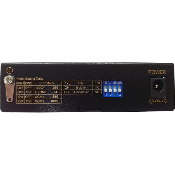 • DIP Switch selectable 100M/1.25G/2.5G SFP mode, and RJ-45 Ethernet LAN Port Isolation Mode